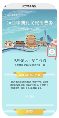 惠游湖北消费券专题页内领取酒店、景点、线路任意消费券,点击“立即领取”,领取成功后将会出现弹屏,红包状态将变成“已领取”。