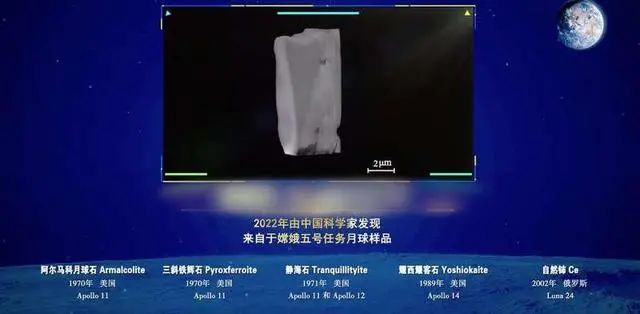 9月9日,国家航天局、国家原子能机构联合在京发布嫦娥五号最新科学成果:中国科学家首次在月球上发现新矿物,并命名为“嫦娥石”。该矿物是人类在月球上发现的第六种新矿物,我国成为世界上第三个在月球发现新矿物的国家。