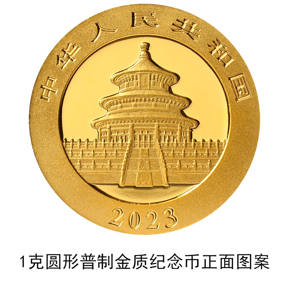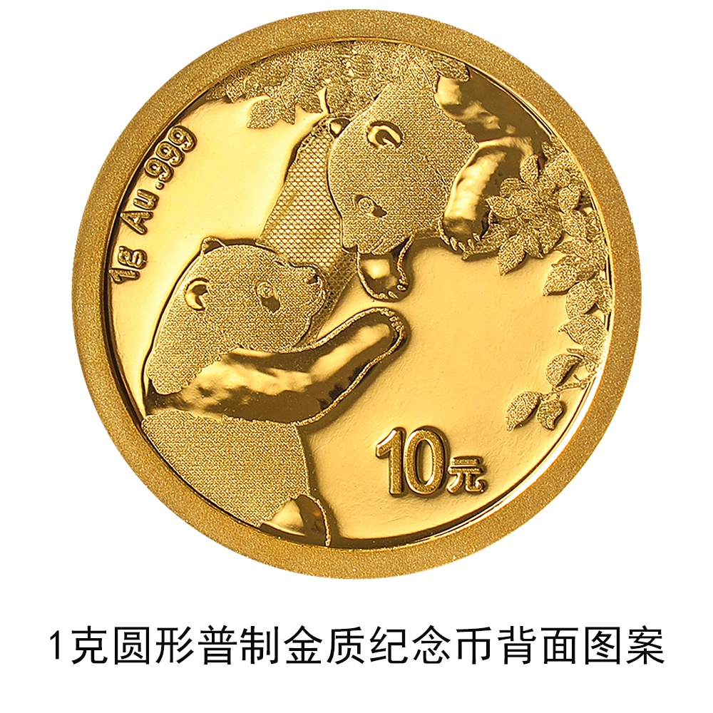 (五)1克圆形金质纪念币为普制币,含纯金1克,直径10毫米,面额10元,成色99.9%,最大发行量500000枚。