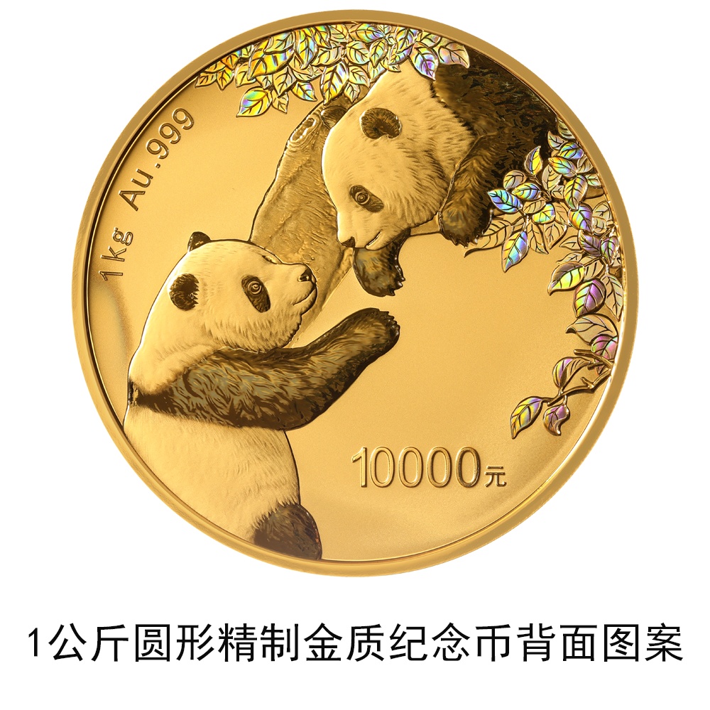 (七)1公斤圆形金质纪念币为精制币,含纯金1公斤,直径90毫米,面额10000元,成色99.9%,最大发行量1000枚。