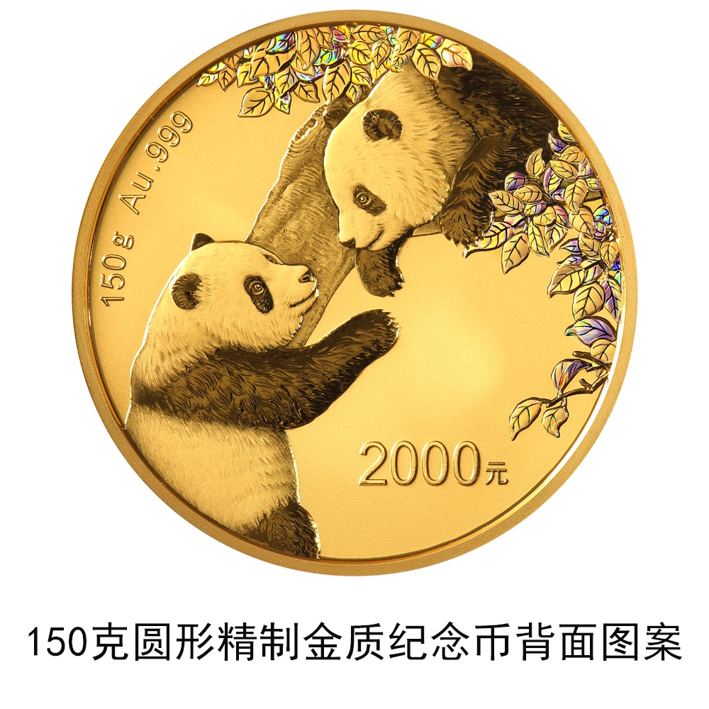 (八)150克圆形金质纪念币为精制币,含纯金150克,直径60毫米,面额2000元,成色99.9%,最大发行量10000枚。