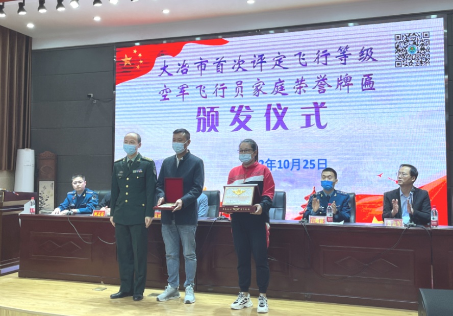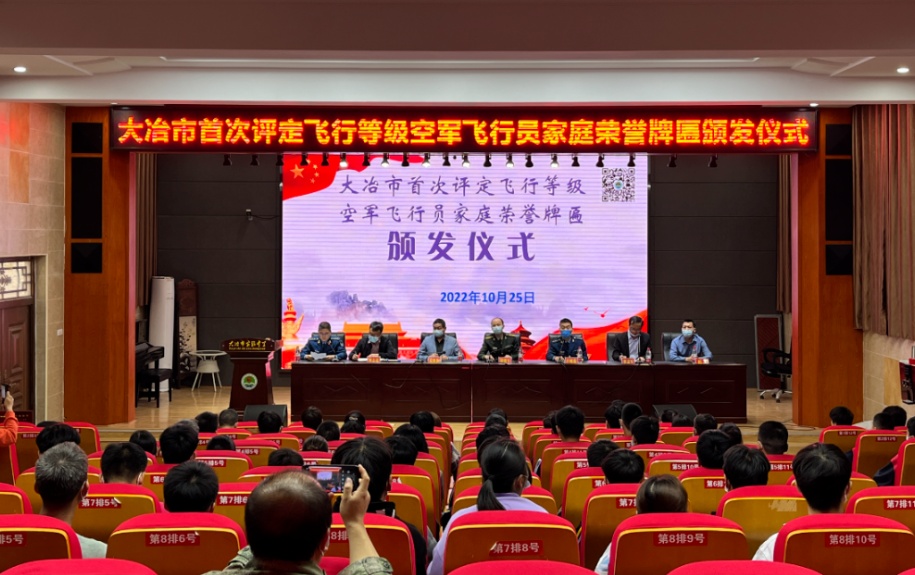 近年来,大冶市高度重视“双拥”工作,积极落实各项拥军优属政策。举行首次评定飞行等级空军飞行员家庭荣誉牌匾颁发仪式,是加强军人荣誉体系建设的重要举措,不仅让军人和家庭感到光荣,也让广大群众对军人多了一份尊崇和认可,提升了军人的职业自豪感,进一步在全社会营造“一人当兵,全家光荣”的社会氛围,汇聚起青少年向往军营、全社会支持参军入伍的强大正能量。(记者 殷珂 通讯员 石程曦 蔡芬)