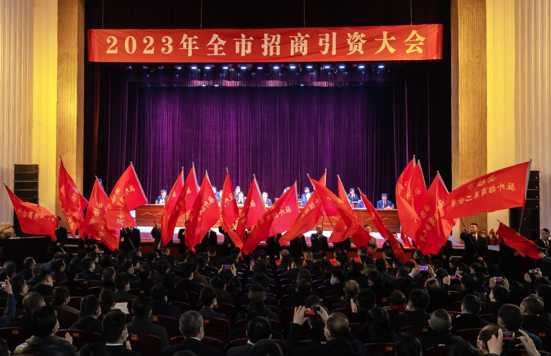 “驻外招商是时代赋予我们的光荣使命,必将牢牢扛起责任,紧盯商机一抓到底!”在全市驻外招商出征授旗仪式现场,驻外招商干部誓言铮铮。烧旺招商引资“这把火”,安陆选派120名精锐干部组建20个驻外招商“尖刀班”开赴各地;同时,聘请20名招商大使当起“招商红娘”……
