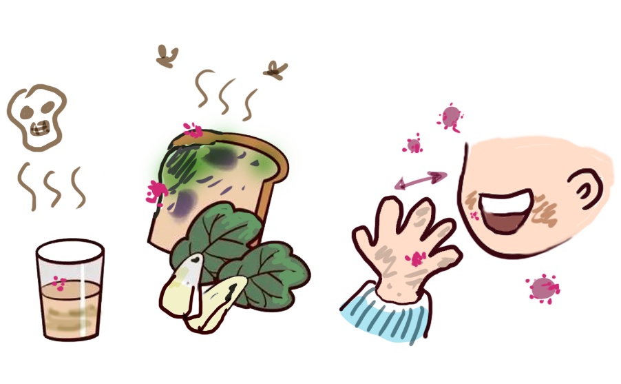 2.手接触到受污染的物体后又触碰自己的口腔;