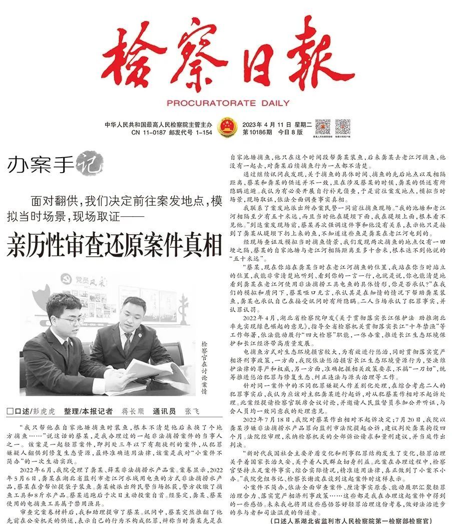 “蔡某,现在你站在龚某当时在老江河捕鱼的位置,我站在你当时站立的位置,我能非常清楚地听到、看到你的一言一行,也就是说,你也能清楚地看到龚某在老江河使用非法捕捞工具电鱼的具体情形,你是否承认?”在我们的模拟和质问下,蔡某哑口无言,承认其是在知情的情况下帮助龚某装鱼,龚某也承认自己在接受讯问时有所隐瞒。二人当场承认了犯罪事实,并认罪认罚。