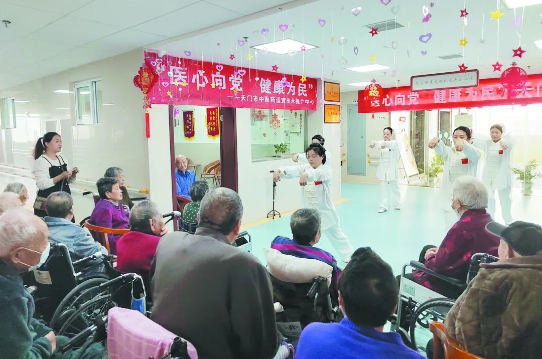 4月29日,天门市中医医院组织护理团队到陆羽养老服务中心开展“无限夕阳红、浓情在中医”慰问活动,通过表演节目、送健康、献爱心的特殊方式迎接“5·12”国际护士节的到来。