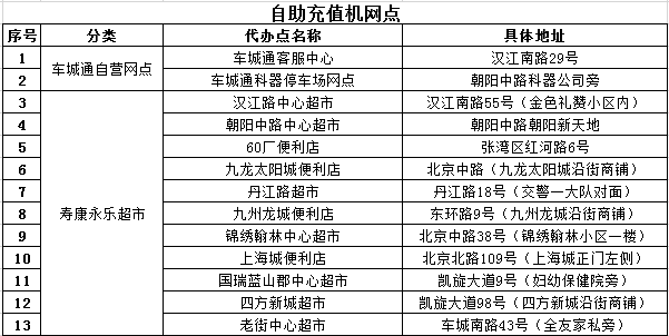车城通充值售卡及自助充值网点