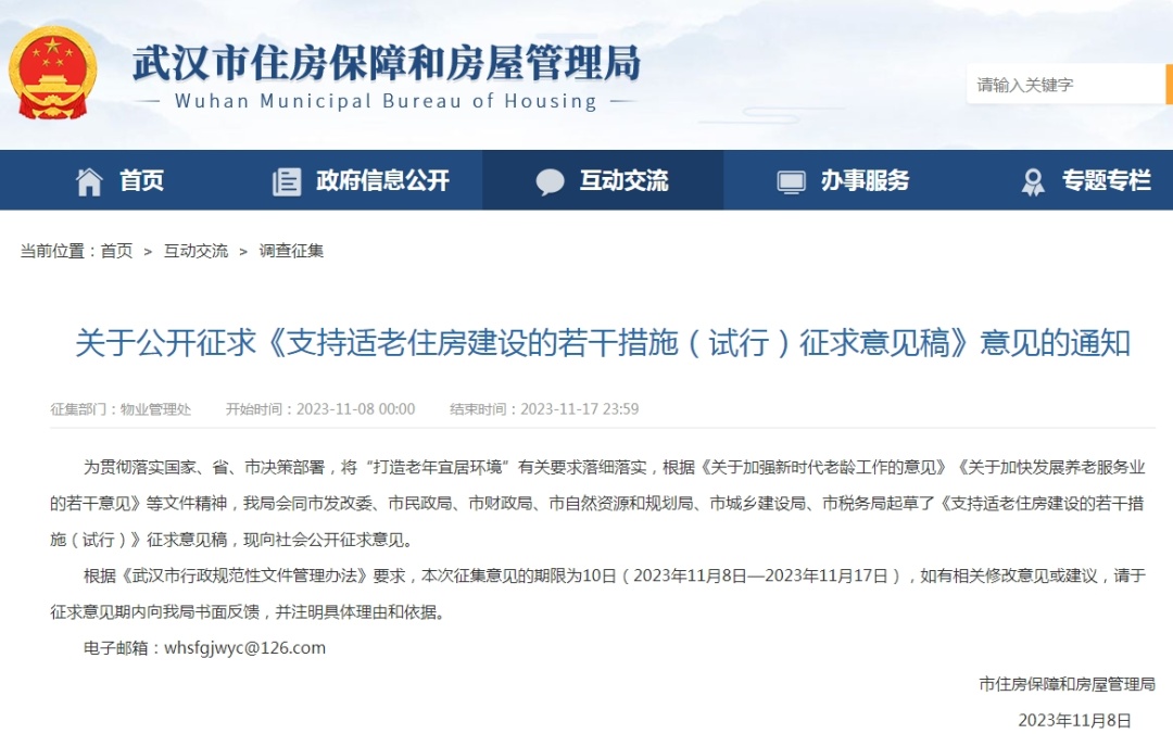 据悉,本次征集意见的期限为10日(2023年11月8日—2023年11月17日),如有相关修改意见或建议,请于征求意见期内向武汉市房管局书面反馈,并注明具体理由和依据,发送至电子邮箱:whsfgjwyc@126.com。