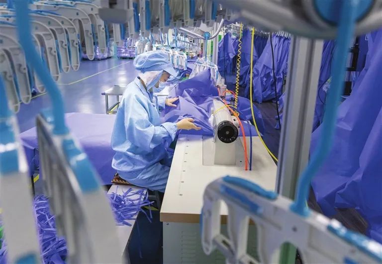 位于张沟镇的湖北唯美医疗用品有限公司主产手术包、急救包、辅料包等医疗组合包,产品主要出口欧美和中东市场。抢抓5G技术风口,去年以来,唯美投入200多万元,打造5G全连接工厂,建起数据采集与监控、设备全生命周期管理、数据可视化、仓储物流可追溯等系统,生产线变得越来越“聪明”,实现了产品从设计制造到生产过程管理,再到设备实时监测的全面集成优化,人力资源支出减少8%,整体生产效率提升15%,产品一次性合格率升至99%。“医疗组合包”畅销国内外。