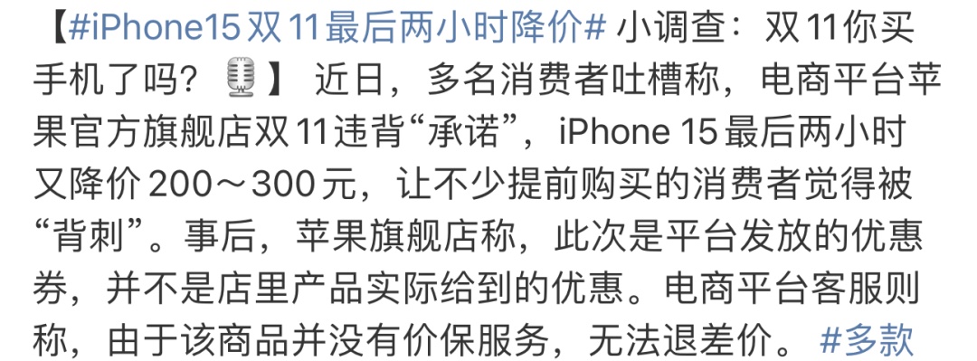 近日,中国消费者协会发布《2023年“双11”消费维权舆情分析报告》: