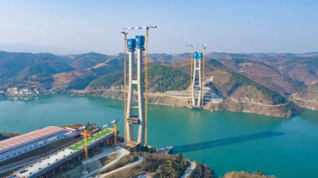 ◎国内最大跨度梁桁组合结构斜拉桥首塔封顶