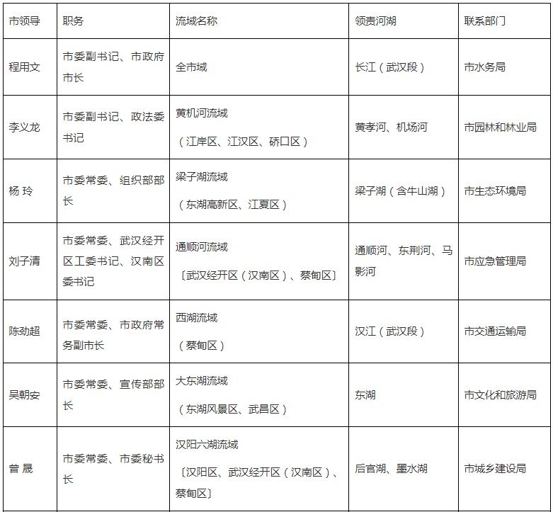 市总河湖长:程用文 市委副书记、市政府市长