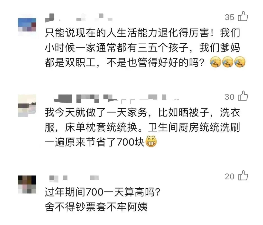 这是因为,过年期间雇主家的人口变多,活也比平时多,综合下来性价比没有想象中高。