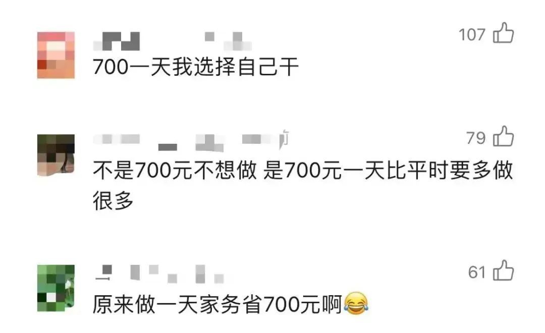 钟点工王阿姨表示,700元日薪并没有什么吸引力,“以前养家压力大,会为了多赚点钱在过年期间坚持工作,但现在觉得,回家跟子孙团聚更重要。”