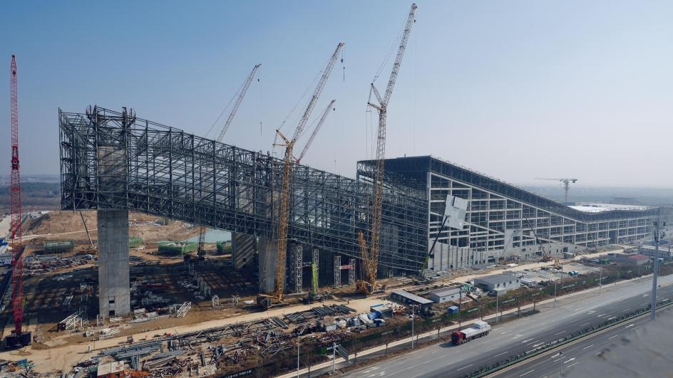 甘露山文创城雪世界钢结构项目负责人蒋杰告诉记者,项目采用超大钢结构悬梁的架空设计,整体用钢量约1.5万吨,92米大跨度,建筑总高度103米,施工挑战巨大。本次提升完成,随后即进行——雪道层结构、冷库板安装、制冷造雪设备和管道等的安装工作,确保2024年年内完成制冷造雪工艺施工,项目顺利开业。