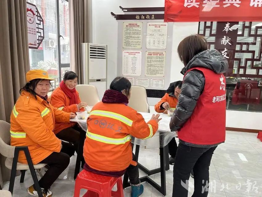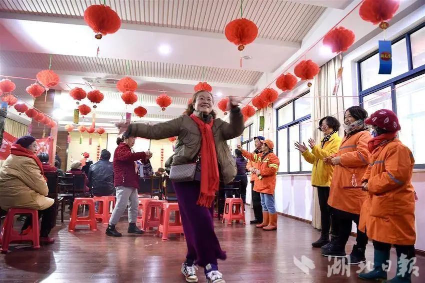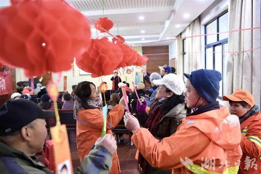 2月21日上午,江城武汉寒风凛冽,武昌区中南路街道新民主路社区里却暖意融融。服务辖区的环卫工人和社区居民一起猜灯谜、吃汤圆,载歌载舞好不热闹。