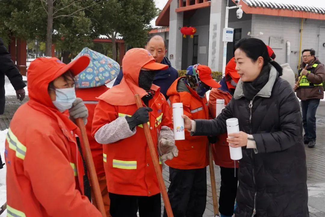 当天下午,襄阳市总工会、襄城区总工会慰问专班先后到岘山广场湖西工会驿站和古城昭明台工会驿站,看望慰问正在坚守岗位、奋战在清雪保畅一线的环卫工人、城管队员等职工群众,为他们送上盛满可乐姜茶的暖心杯和暖热贴等御寒物资,并向他们致以崇高的敬意和真诚的感谢,叮嘱他们要注意自身安全,认真做好防寒保暖工作。