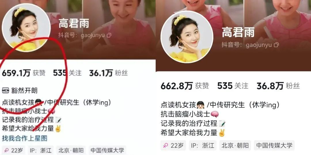 有媒体通过查询发现,舆论发酵后,高君雨抖音账号中的“豁然开朗MCN”认证,目前已经被取消。