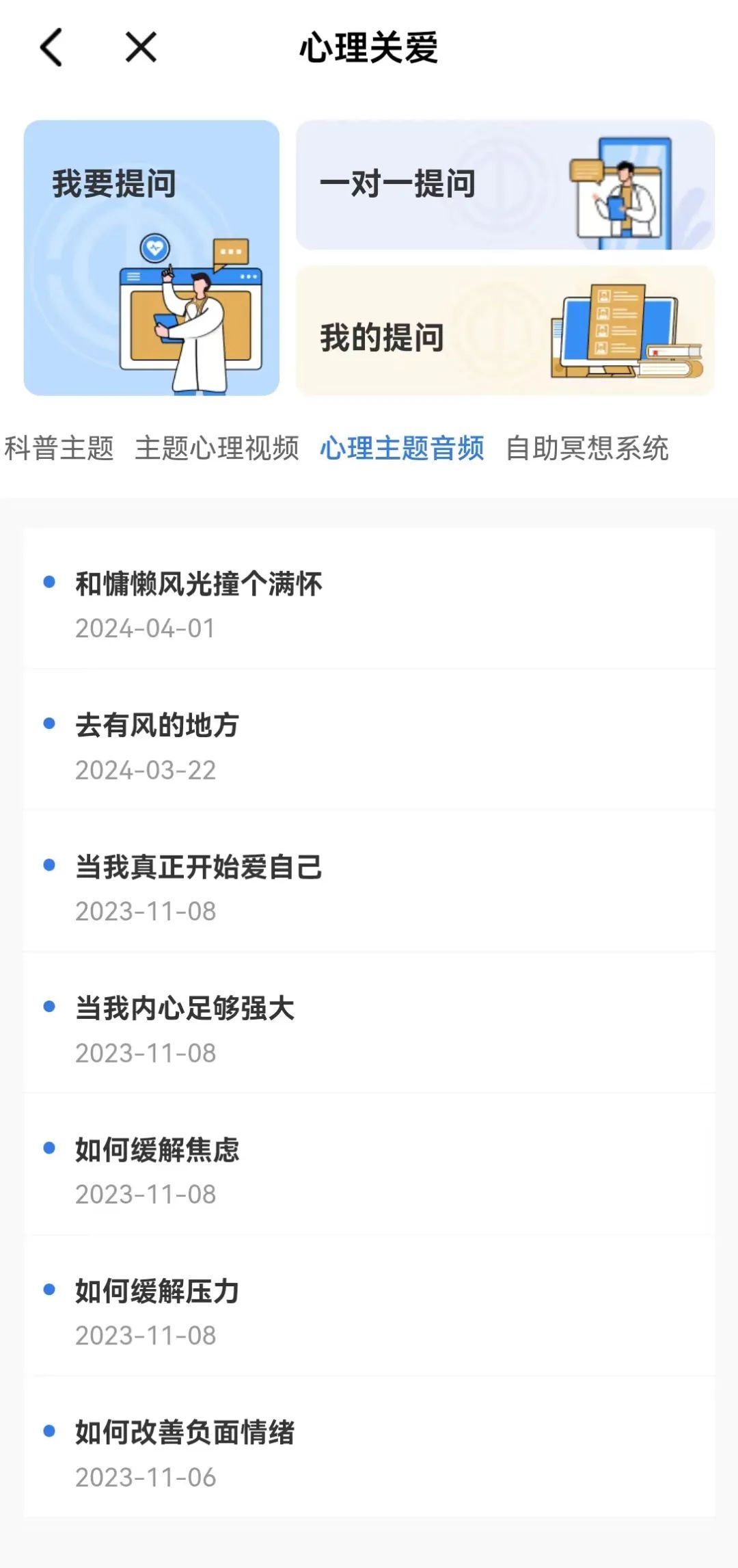“心理主题音频”“自助冥想系统”