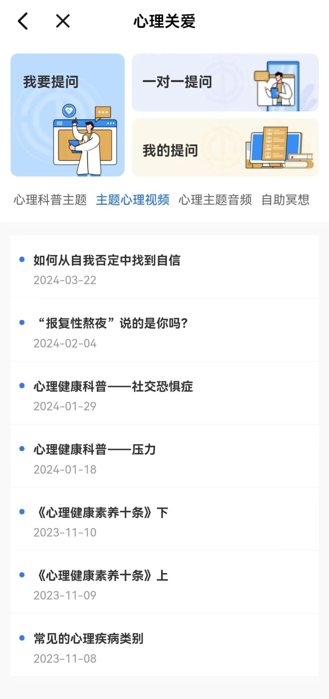在首页点击“心理关爱”,进入专区。