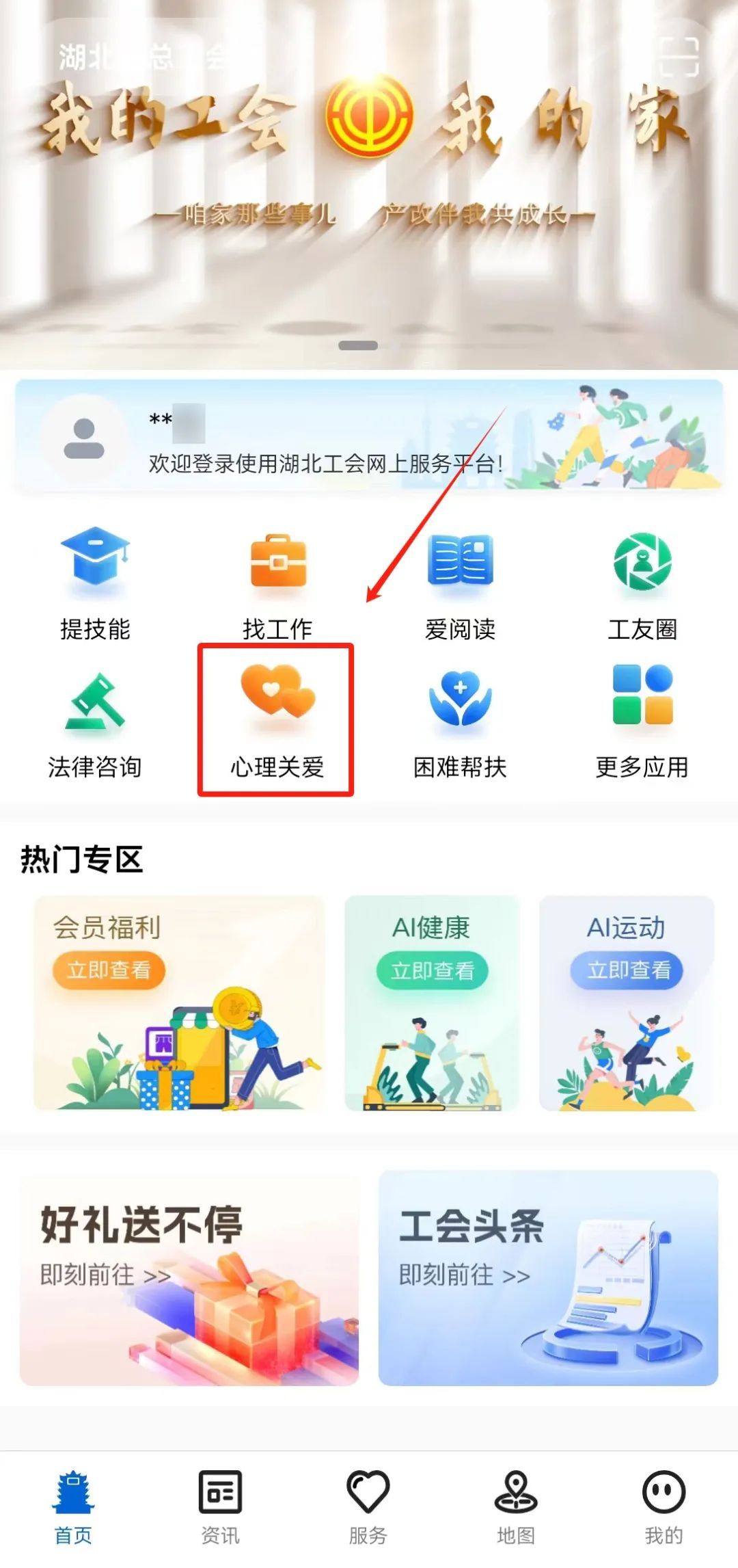 第二步:进入“心理关爱”专区