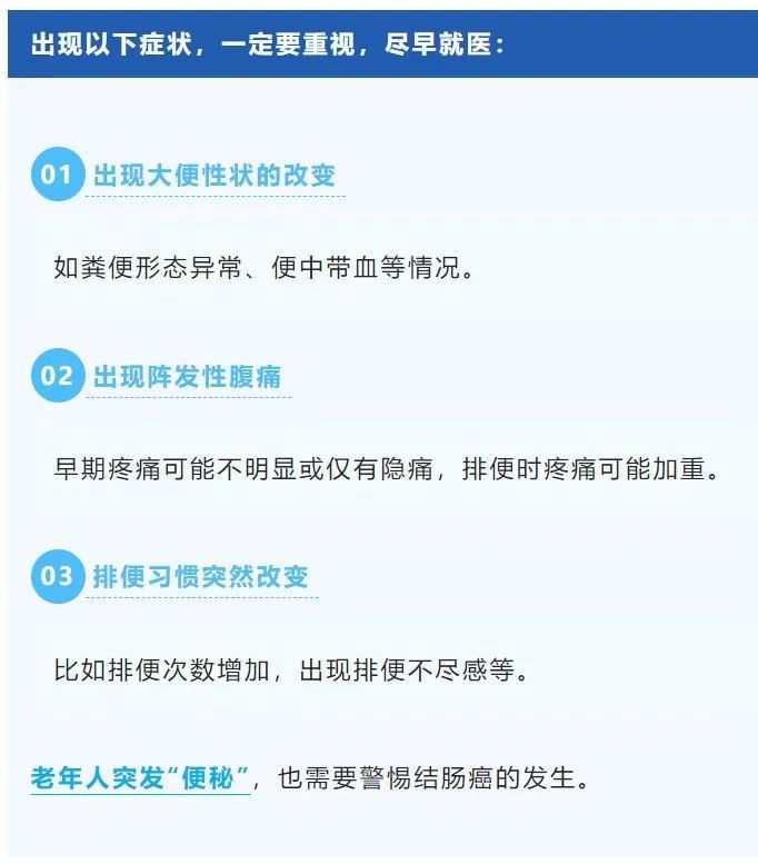另外,建议45岁以上的人群最好定期进行结直肠癌的筛查,检查的方法主要包括大便隐血和肠镜。高危人群,特别是有家族遗传史的人群,建议尽早前往正规医院就诊。