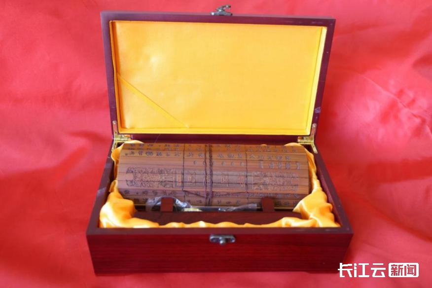 荆楚文化主题展区深入挖掘历史遗珍,展出了最早的乘法口诀实物《九九术》战国楚简图片、黄鹤楼的复刻模型、郭店楚简、武当金龙等系列文创产品。