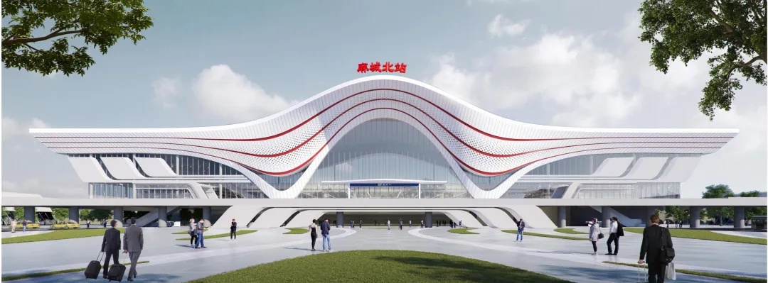 麻城北站是改扩建车站,位于湖北省麻城市,利用原有站房位置新建2台6线高铁场,预留2线,再加上既有的2台4线,总规模将达4台12线,站房面积共18000平方米。