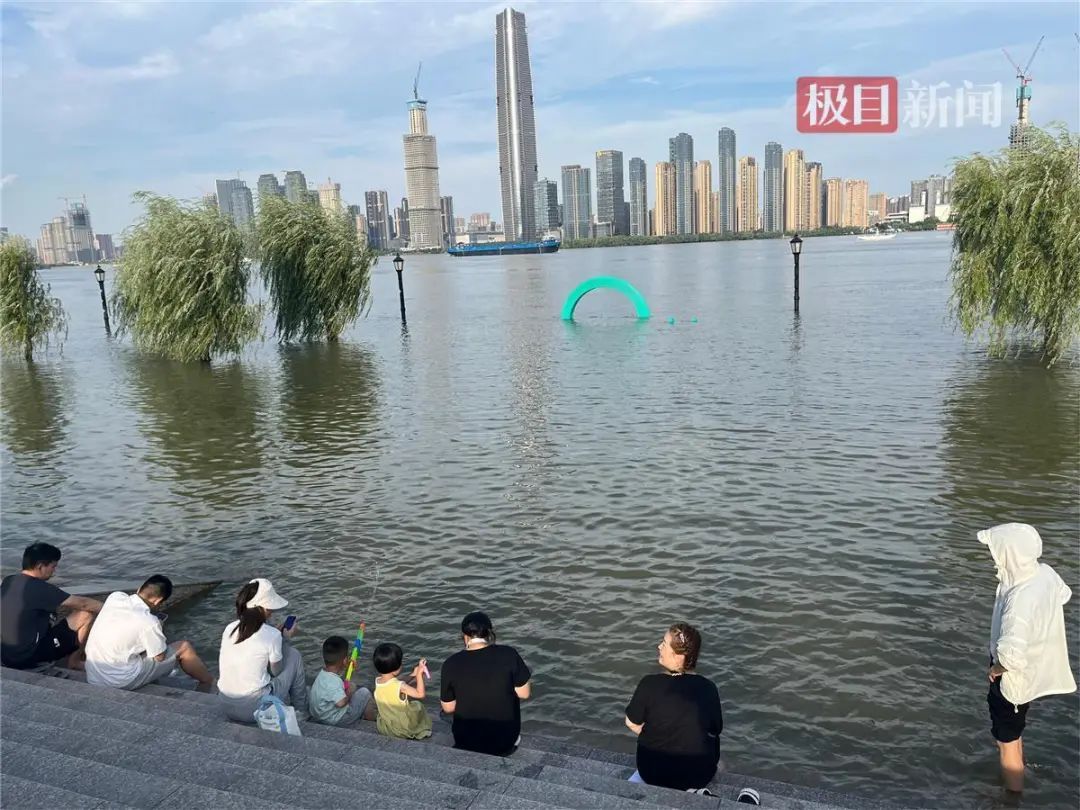 汉口江滩的网红雕塑“一家五口”,成为直观体现武汉水位的一个窗口,万千网友看着它们一点点潜入水中。8日水位下降后,极目新闻记者看到,雕塑中两个成年人的头部开始露出水面,不少网友站在岸边打卡拍照。