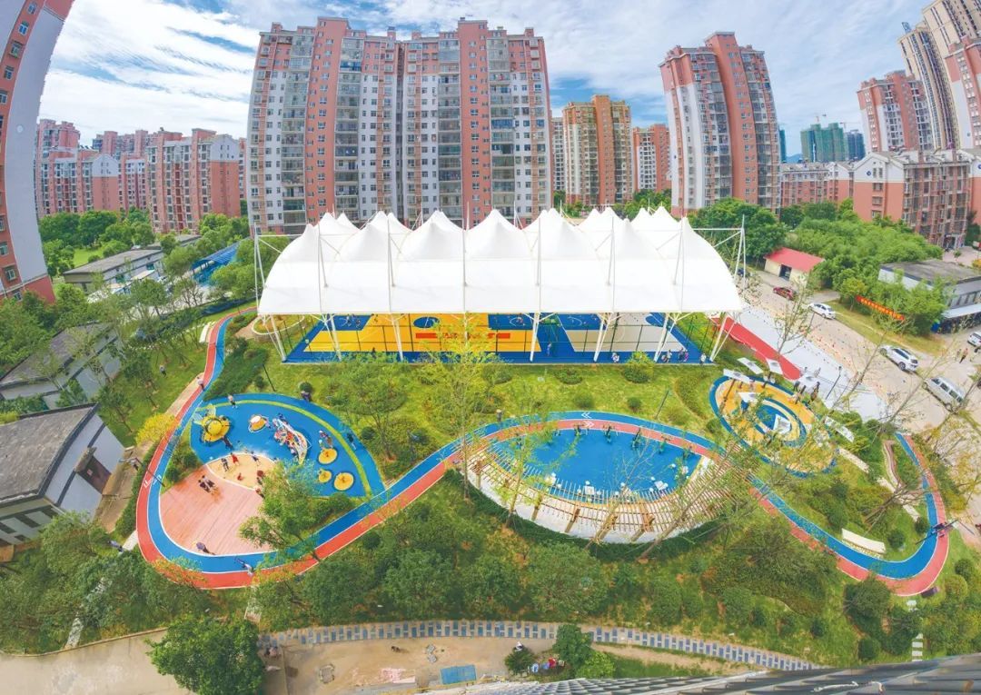 目前,公园内设有11个功能区,其中包括主入口广场、智能景观路径、老年人棋牌区、负重力量区、多功能篮球场、羽毛球场、乒乓球场、智能单车竞赛区、儿童游乐区以及绿化景观等,满足了不同年龄层居民的健身和娱乐需求。