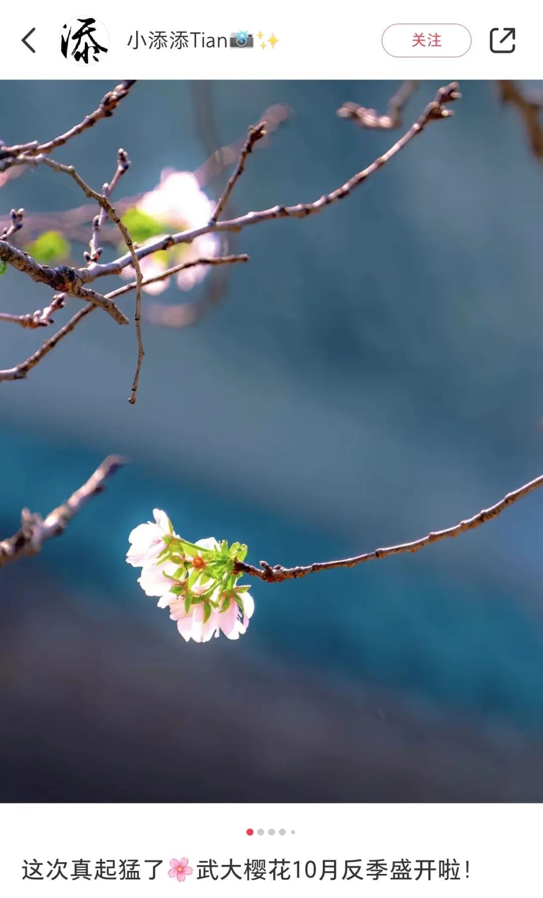 这几天,小红书上,也有许多网友分享自己拍到的“反季节樱花”照片。