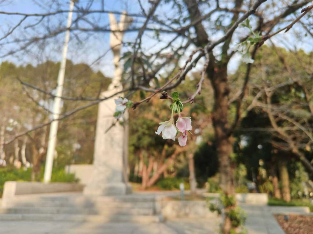 9月21日,武汉大学动力与机械学院大三学生张家辉路过鲲鹏广场时,意外地发现一棵樱花树上竟然绽放着少量花朵。他将这不同寻常的景象拍摄下来,并分享到了自己的朋友圈,迅速引起了同学们的好奇与兴趣,纷纷前往观赏这棵“不按常理出牌”的樱花树。