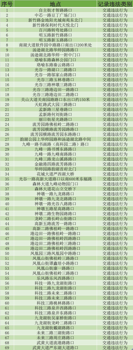 本周,武汉市公安局交通管理局发布多条公告,根据道路交通安全管理需要,拟在部分道路设置交通技术监控设备。相关设置地点具体如下(向下滑动查看)↓