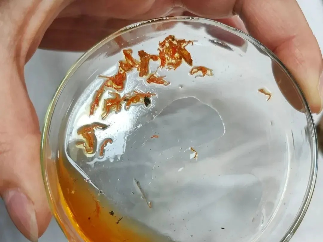 还有大量伪品染色的情况,比如用大血藤充当鸡血藤、用红花染色充当藏红花等;甚至烟蒂、塑料、石块、螺蛳壳等杂质直接填充来“压秤”的。
