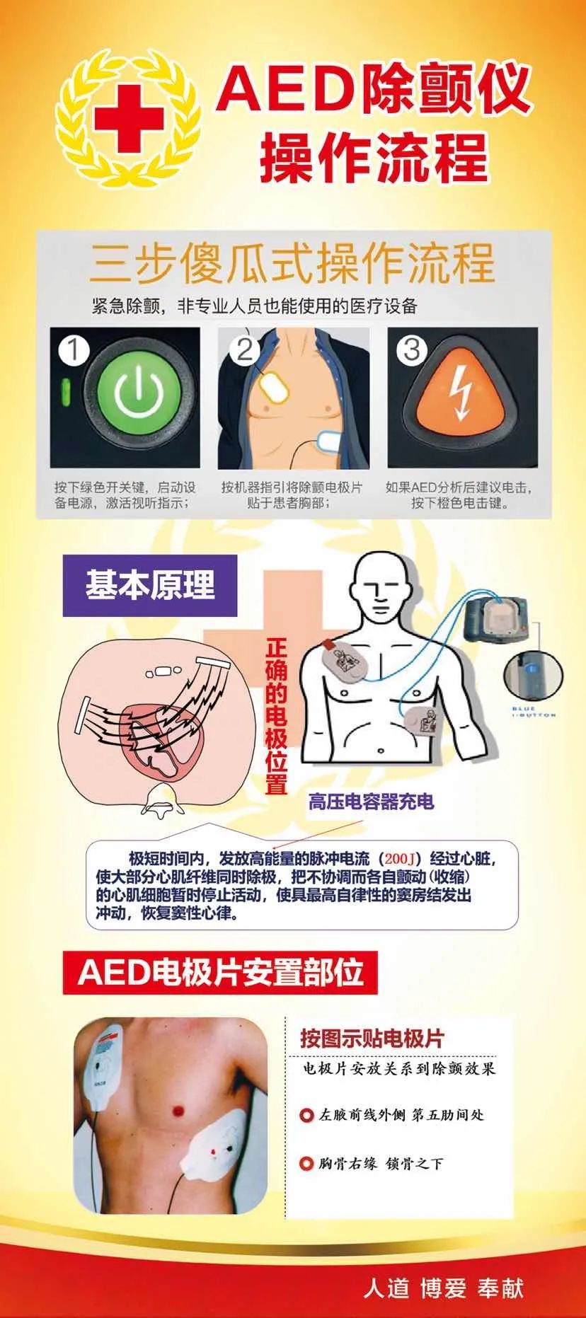 是一种便携式的医疗设备,它可以诊断特定的心律失常,并给予电击除颤,是非专业人员可使用的用于抢救心跳骤停患者的医疗设备。患者心跳骤停时,在最佳抢救时间的“黄金4分钟”内,利用AED对患者进行除颤和心肺复苏,能有效防止猝死。