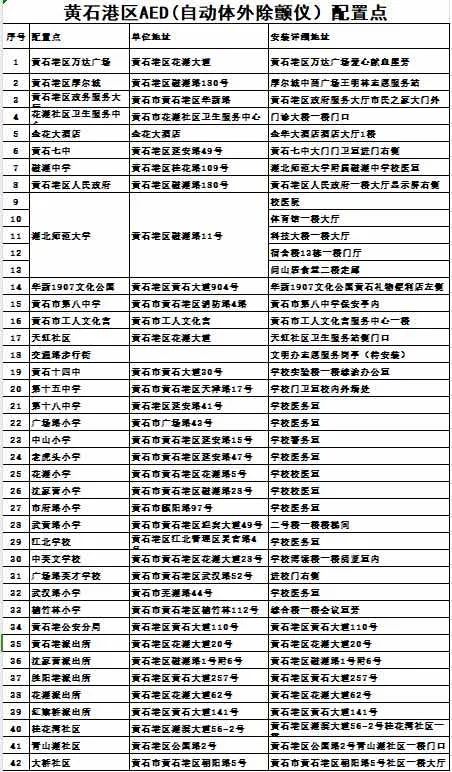 黄石港区红十字会负责人介绍:“今年,在市红十字会的大力支持下,我区新增24台AED。目前共安装42台,基本实现大专院校、中小学,公安分局、基层派出所‘救命神器’全覆盖,为居民群众生命安全保驾护航。”