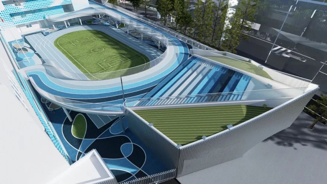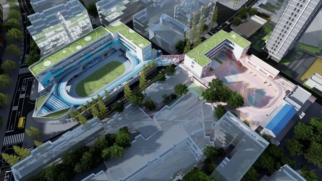 据介绍,这种“天空校园概念”,可让两所学校共用兴趣教室、食堂和教学资源,发挥出“1+1>2”的效果,连廊下的新建区域还能给学生增加更多活动空间,增加安全性。