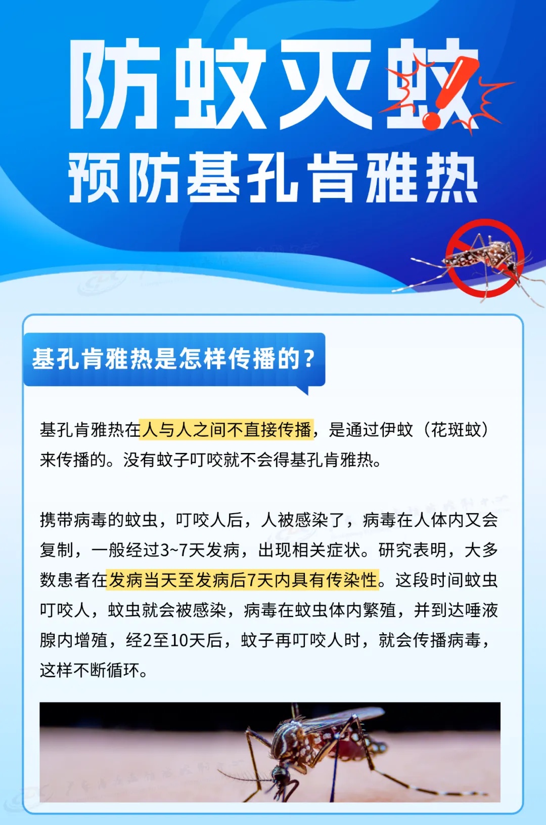 为控制基孔肯雅热传播,城区已在相关区域开展蚊媒专项消杀工作,并将在全城区继续深入开展爱国卫生运动。在此,建议广大市民积极做好个人防护,清理积水、灭蚊虫、防叮咬。若出现发热、皮疹及关节疼痛等症状,请及时到医疗机构就诊,并主动告知旅居史和蚊虫叮咬史。