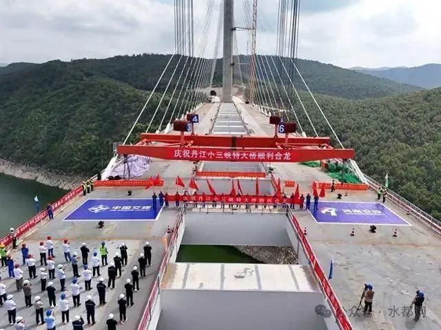 丹江小三峡特大桥主梁为分离式钢箱梁,由35节钢箱梁吊装而成,单节最大起吊重量约312吨,总钢材用量接近万吨。据了解,本次合龙段吊装时,合龙口富余宽度仅有2厘米,施工现场位于峡谷内,存在风力、桥面晃动等多种复杂影响因素,这些环境因素稍有变化均有可能给吊装工作造成困难。