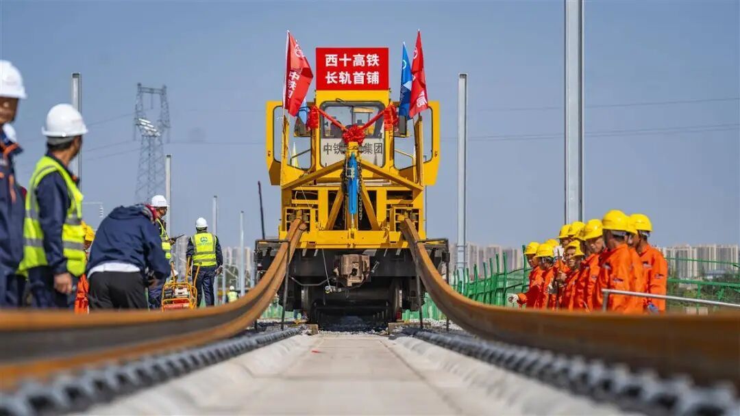 9月8日,随着首对500米长钢轨平稳地铺设在西安东至蓝田区间的无砟轨道板上,西十高铁全线铺轨正式启动,标志着该项目正式进入最后的攻坚阶段。