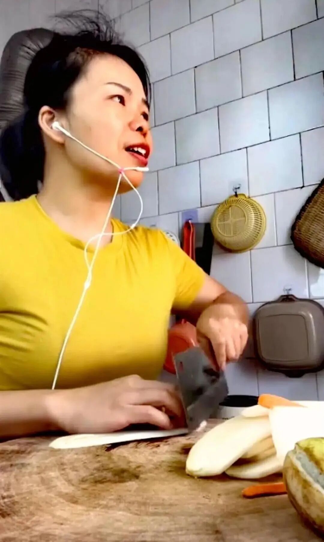 再后来,李芬芬干脆边做饭边唱歌。厨房里切菜的笃笃声、洗碗的哗哗声,成了独特的伴奏,再配上她自带混响的女中音,戳中了无数人。直播间最多时有近6万人同时在线。