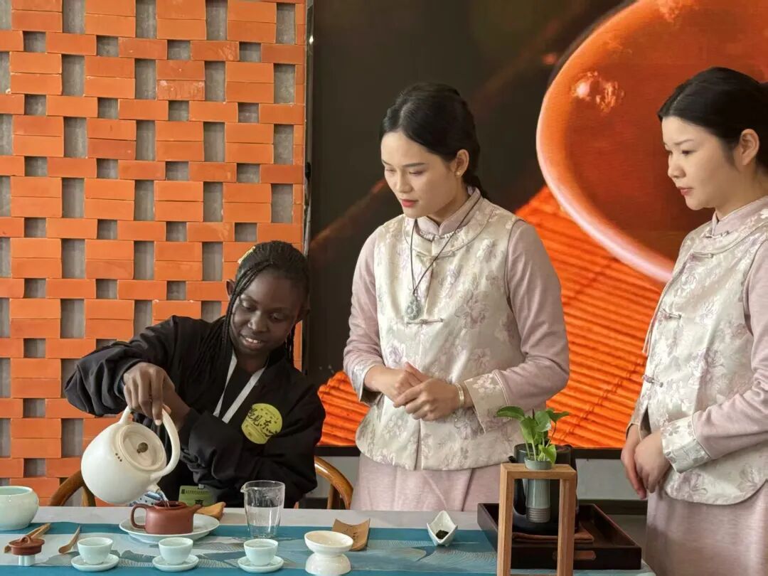 这场跨越国界的“重走茶道 遇见东方”之旅,也激发出年轻学子们成为文化传播桥梁的心愿。来自泰国的中国地质大学学生张明诚在行程中一直用镜头记录,“我拍了好多视频,为了给泰国人介绍青砖茶,因为我觉得大部分泰国人不知道青砖茶是什么。”他之前从未见过砖形的茶,却在品尝后惊喜于其醇厚与留香,渐渐喜欢上这一独特的中国茶韵。