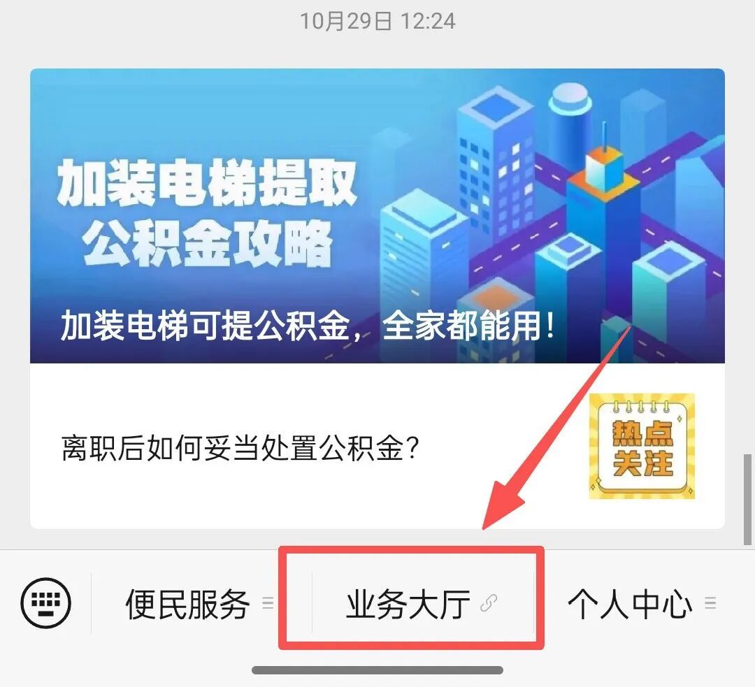 微信搜索并关注“宜昌公积金中心”微信公众号,点击底部菜单栏的【业务大厅】