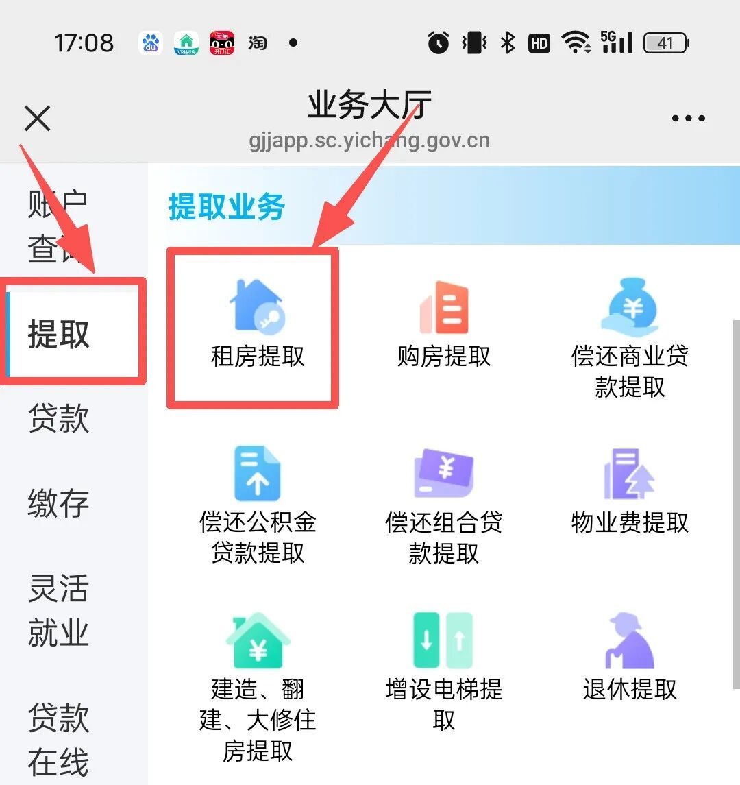 在业务大厅页面,找到【提取业务】模块,点击进入后选择“租房提取”功能点。