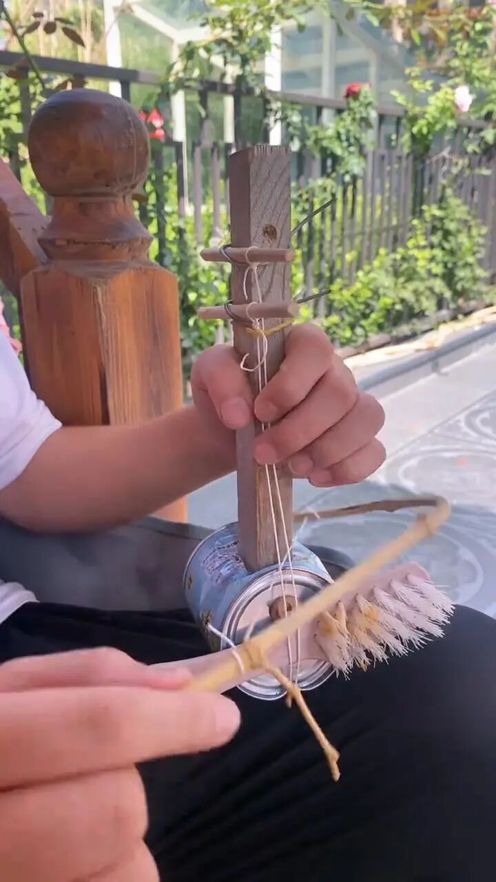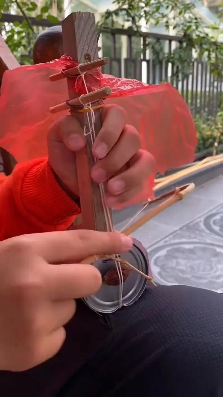 “当时,我们给他报了二胡培训班,没想到他很有天赋,别人三四节课才能学会的东西,他一节课就学会了。”赵先生说,2025年暑假,孩子突发奇想,尝试用废弃易拉罐、木棍、筷子、桃核、竹子、细线等,自制一个迷你二胡,高度20厘米左右,“没想到还真能出声”。
