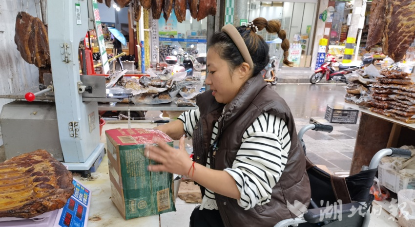 今年4月,她的“金腊满堂”农产品店顺利开业,店内销售的腊肉、香肠等猪肉制品均由她亲手制作,因其诚信经营、产品质量过硬,积累了众多回头客。“在坚持中实现目标感觉很幸福。”胡燕的笑容里,洋溢着自豪感和成就感。