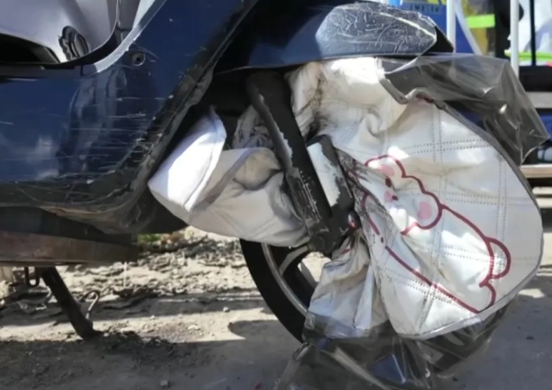 电动自行车驾驶人在横穿快车道时,因“挡风被”阻碍无法转弯,被小车挂倒后惨遭其它车辆碾压。