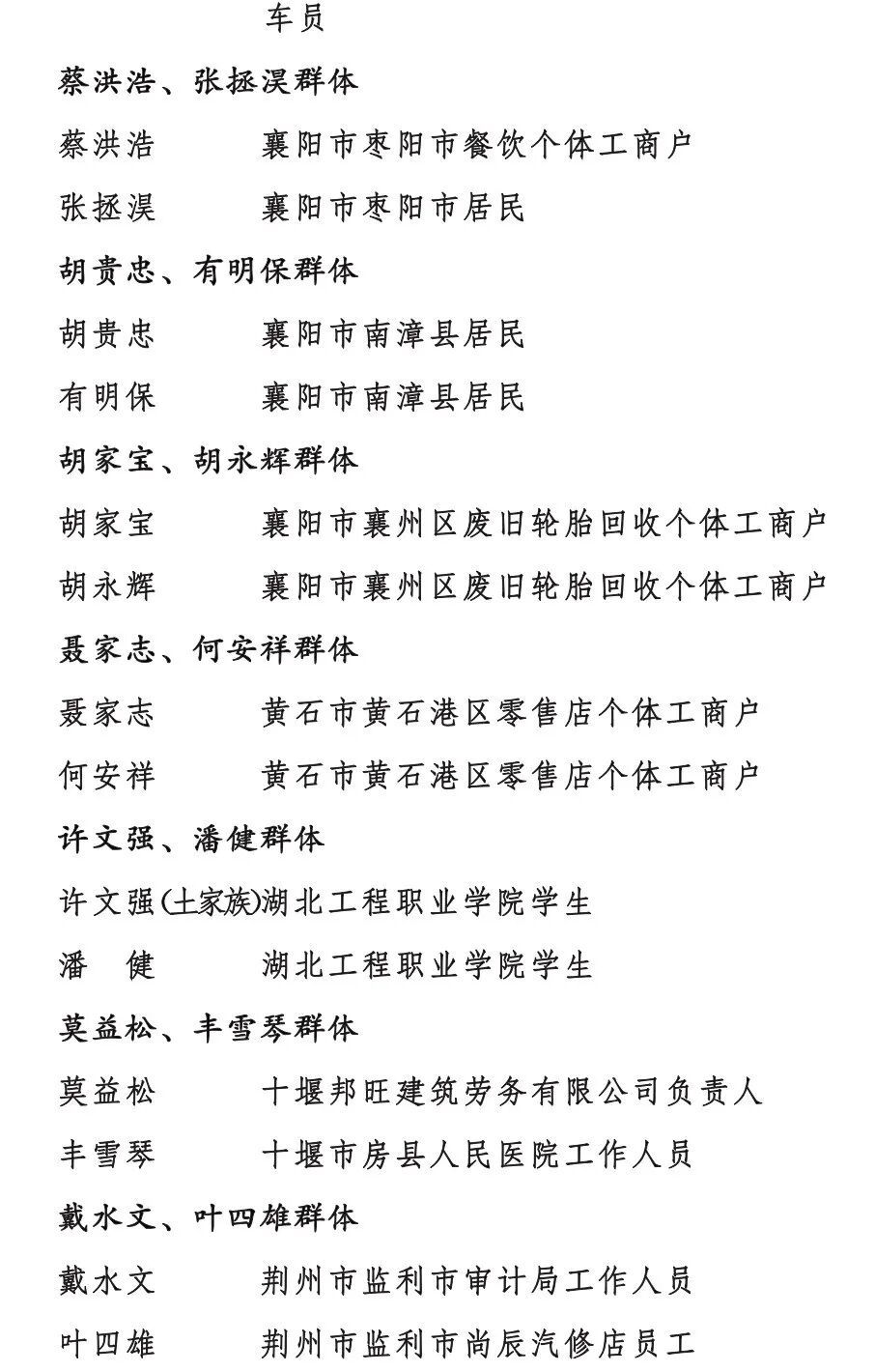 附:湖北省见义勇为英雄及先进(群体)表彰对象名单