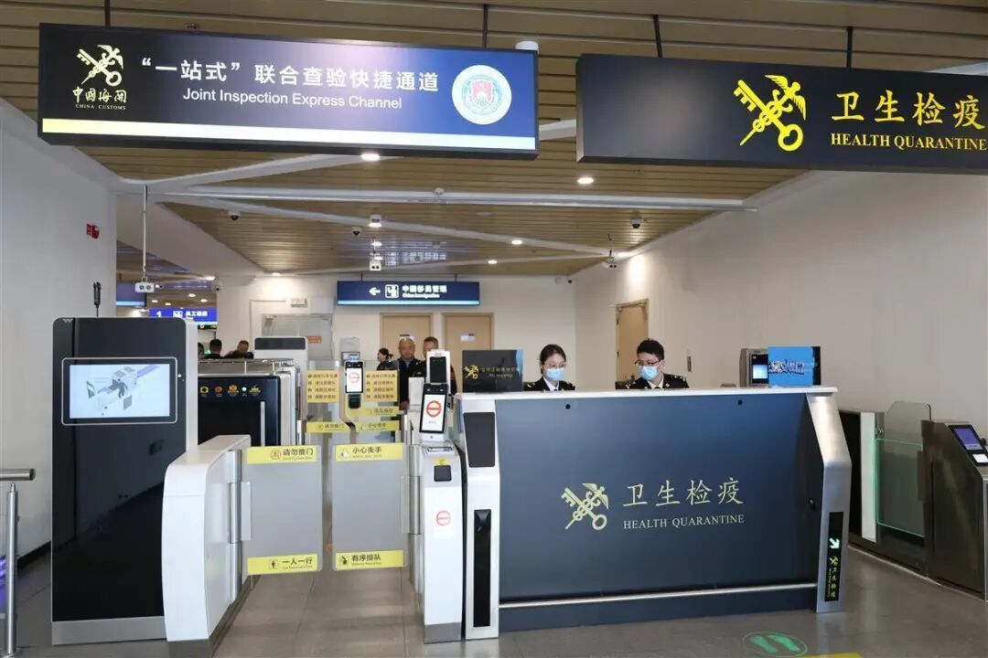 12月1日下午2时,随着按钮启动,鄂州花湖国际机场入境机组人员新的通道开启。如今,花湖国际机场创新推出海关、边检、安检“三检合一”联合查验通道,在这个不到2米的通道中,将证件读取、卫生检疫、行李查验、生物信息采集等流程整合为一,真正实现“一次查验、一次放行、无感通关”。