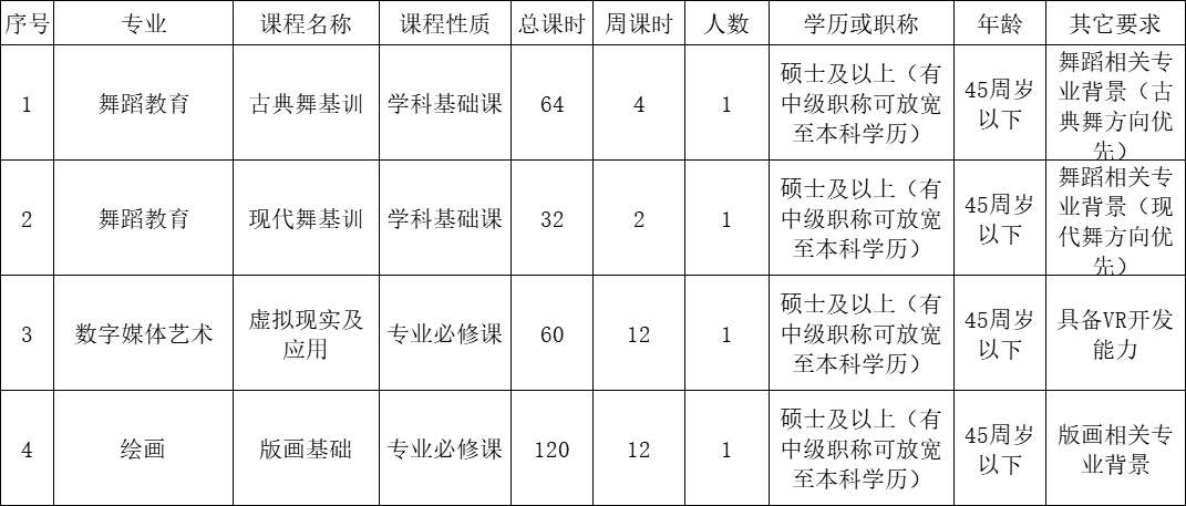 (五)面试考核:初审通过者将以电话或邮件形式通知面试,面试含教学试讲和专业测试环节,具体时间、地点及形式另行安排。